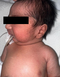 Full-term male neonate, 48 hours of birth product of II gestation of pregnancy of 39 weeks with negative amniocentesis and controlled pregnancy, obtained by simple eutocic delivery where the neonatology service shows signs of gastroesophageal reflux during breastfeeding and alteration in the palate, which is why they request an evaluation by the Plastic and Reconstructive surgery service. At the physical examination, adequate mouth opening is evident: a palatal cleft is visualized that involves the hard and soft palate of approximately 25 x 30 mm, which allows visualization of the posterior surface of the pharynx. Absence of choanae with hypoplasic tongue. Suction reflex preserved with decreased pressure. Round nasal tip is evident. Findings are complete palatal cleft, microglossia and micrognathia which are compatible with the Pierre Robin sequence diagnosis. Work plan begans by evaluation of Pediatric dentistry (consider palate plaque) and evaluation by phoniatrics and performing exercises to stimulate the muscles of the soft palate while it is assessed to be able to the future surgical treatment.