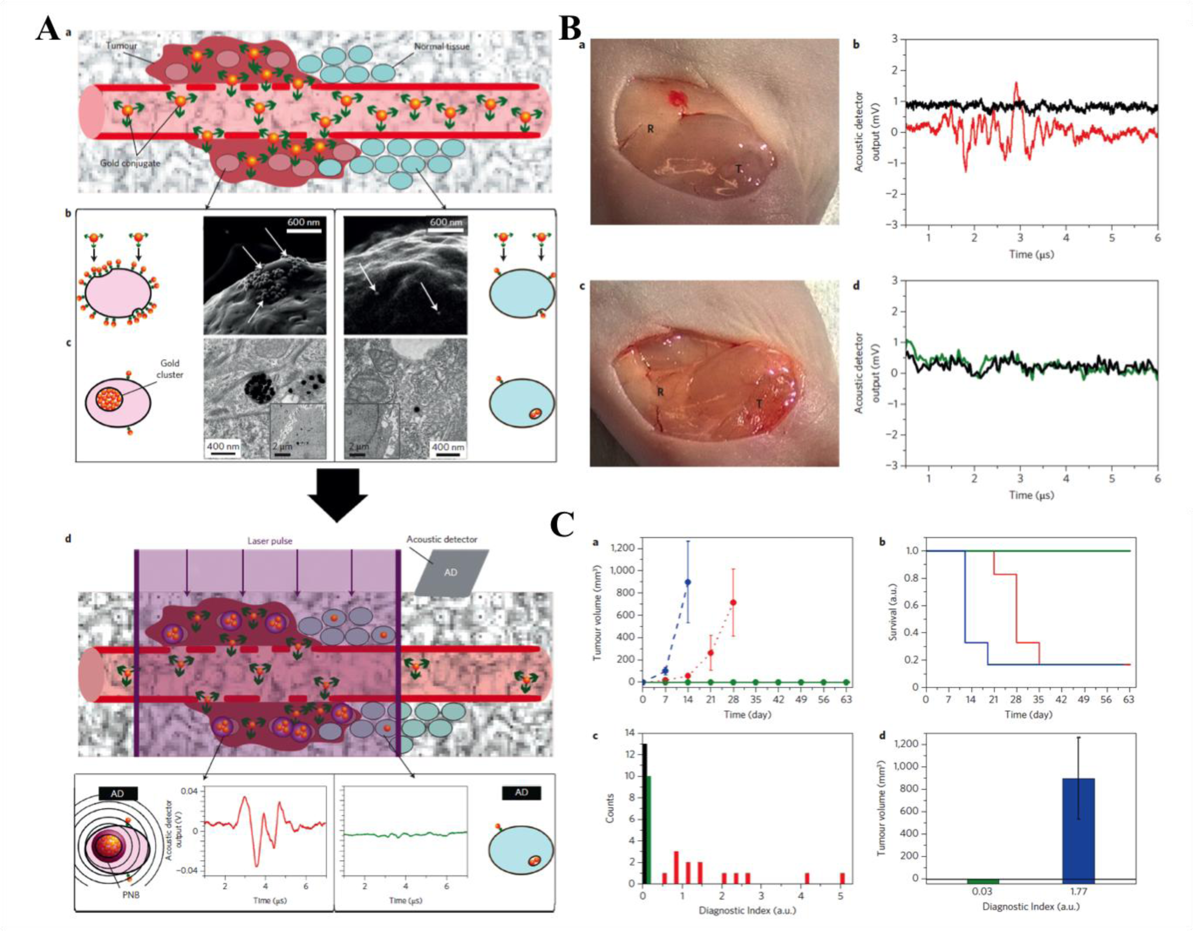Keywords: nanotechnology, diagnostics, theranostics, oncosurgery, photo-triggered, laser ablation, imaging-guided surgery, real-time detection, surface plasmon resonance, oncology, cancerous, angiography, NIR imaging, nanoclusters, picoseconds