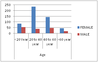 A total number of 664 patients coming to the outpatient department enrolled to our study. In study male 510were 164, female were of sample size added for the study. The result showing in the Figure 1 below.