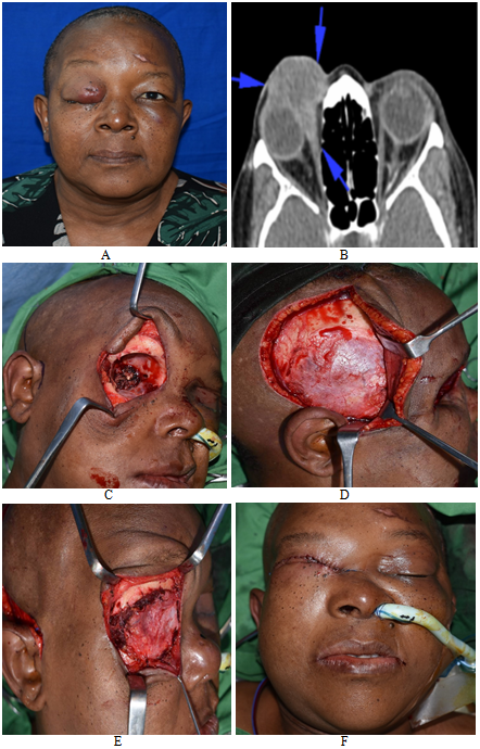 Figure 1 A Extra oral photo showing right orbital tumour causing proptosis and eye closure