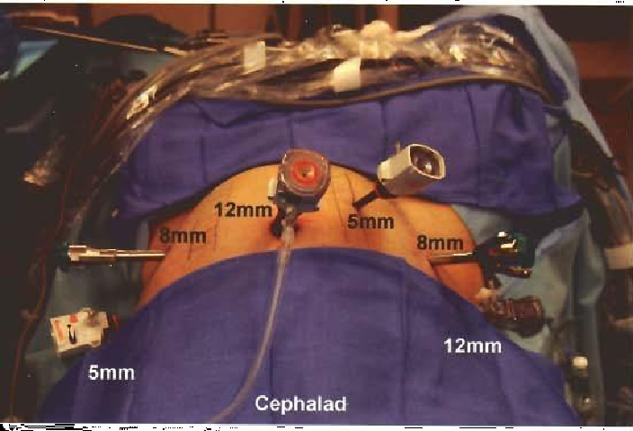 Patient Positioning: The patient is placed in supine and extreme Trendelenburg position with adequate padding of the pressure points: shoulders, back, legs and arms. The patient is then to the table using cloth tapes over two egg-crate foams. An 18F foley catheter is placed in the bladder and connected it to a drainage bag. The patient receives IV antibiotics and DVT prophylaxis as per protocol. The abdomen and pelvis are prepared and draped in the usual sterile fashion.