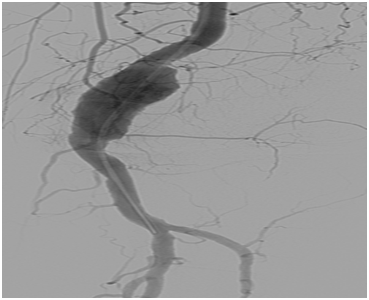 An otherwise fit 72-year-old man presented with left calf swelling. Initial investigations for DVT were negative but clinical examination revealed a Popliteal artery aneurysm. This was confirmed on duplex and subsequent CT angiography. The case was discussed at a multidisciplinary meeting and given the good landing zones in the proximal and distal popliteal artery the patient was put forward for endoluminal stenting. Given the slight tapering of the Popliteal artery a 8mmx5cm Viabahn stent was placed in the distal landing zone followed by a 9mmx10cm Viabahn, overlapped by 2cm and landed in the proximal popliteal. This was accomplished by a transfemoral antegrade approach. The stents were gently balloon impacted into the native artery and into the junctional region with a 9mmx4cm angioplasty balloon. Check angiography was satisfactory and stent expansion was confirmed with IVUS prior to the end of the procedure. The patient is alive and well 6 months post-stenting (Figure 3a-3d).