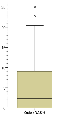 The database was built using MS Excel and statistical analysis performed using SPSS 22 for Windows. Os scores quick dash for is presented as median (25th - 75th) and as graphics box-and-whisker type.