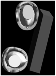 The Bell FactionTM model was positioned in a manner akin to the manufacturer’s fitting instructions. A void was present between the helmet and head form, which would normally be filled by comfort padding and hair. An iterative process was adopted to identify the helmet density, thereby enabling the ADAMSTMsoftware to automatically calculate the inertial properties. The helmet was then rigidly constrained to the head form, to represent the ‘worst-case’ of zero slippage between the helmet and head during impact and thus, provide a comparison of the effects of geometric variation between helmets.