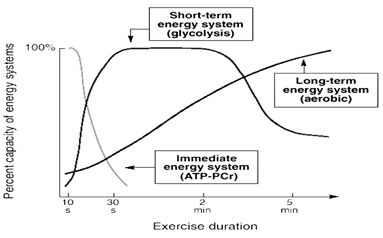 Figure 1 Shows the traditional model illustrating the involvement of anaerobic and aerobic energy transfer systems for different durations of all-out exercise.14