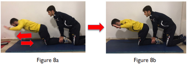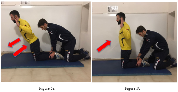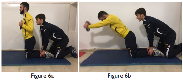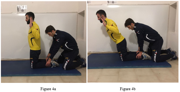 Figure 5a-b Nordic hamstring with return. It represents a variation of the traditional Nordic in which the athlete associates the eccentric phase with a concentric one with which he returns to the starting position.