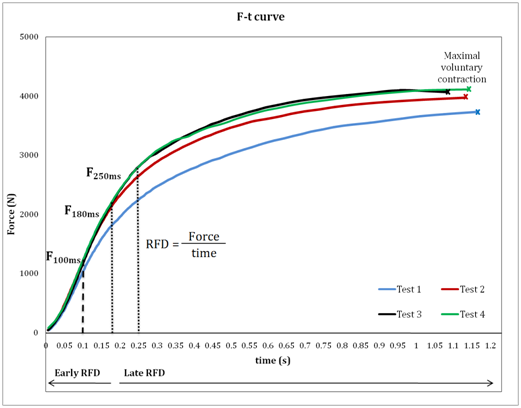 The results of this study have the following implications for the assessment of different early RFD characteristics during maximal isometric leg press in trained high level athletes: