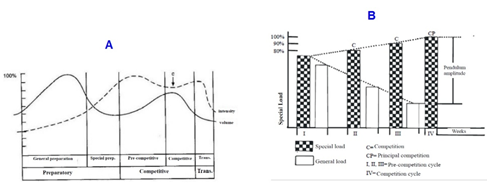 High load system periodization was proposed by Vorobiev for weightlifting.5 The training stimulus be higher, the coach prescribes with “jump loads” for the training to avoid stagnation.8 The objective of the alternation of the load (general and special) is that the athlete achieves the peak.