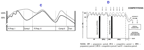 Pendular periodization of Arosiev and Kalinin was elaborated for combat sports and for sports with high technical and tactical demands.29 Then, this periodization is indicated for the sports arts, the combat sports, and the collective sports games. This periodization has the characteristics of alternation between the general load and special load, but the special training load gradually increases during the season.18 The objective of the alternation of the load (general and special) is that the athlete achieves the peak.