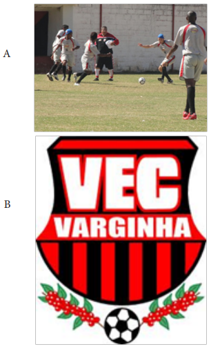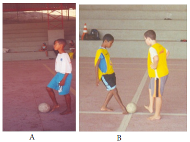 Figure 3 (A) Indoor soccer player with the emphasis on peripheral vision during the match. (B) The player practicing the pass with the central vision.