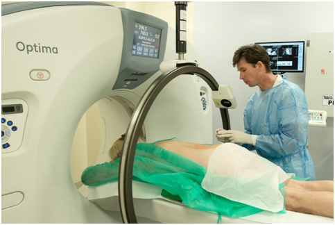 An interesting option of treatment are mini-invasive techniques used in a very dynamically developing area of pain medicine, aimed at alleviating symptoms, especially in chronic phase of spinal pain when none of myriad of rehabilitation methods including physical and manual therapies are insufficient. No matter how sophisticated procedure-spinal injections, mini-destructive procedures (cryoablations, thermoablations, ozone discolysis), implantation of electrodes and spinal cord stimulators or epiduroscopy with root neurolysis each requires precise imaging so that it can be carried out safely and effectively. The most widespread method are however spinal injections guided by one of the form of imaging techniques such as fluoroscopy, USG, CT and MRI. Individual techniques have their important advantages and disadvantages. Fluoroscopy is probably the most widespread method in the world of specialists dealing in pain medicine. It is relatively cheap, easy available and the images are fairly simple to interpret, but it is associated with negative effects of X-rays for both the patient and the operator. In the case of very difficult conditions, for example, for aminal stenosis in the lumbar region or the presence of implants, the location of a needle often requires a series of exposures in several planes. Thus, despite the fact that the dose of radiation in a single CT scan is several times greater than in a single X-ray, the total dose of several exposures may be approaching that achieved in CT. The exposure of the personnel to radiation reflected from the patient's body is also significant. In some cases, the final confirmation of the correct location of the needle is the way of spreading the contrast before the administration of the appropriate drug, which involves additional risk (allergies), and also extends the entire procedure. However, the positioning efficiency of the needle is not impressive at all. In the work of Galholm et al.8 The effectiveness of periradicular injections in the lumbar region was estimated at 78%.8