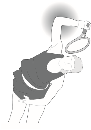 Priest, Jones & Nagel recall how tennis serve (Figure 5A) is considered a variant of "overhand throwing" (Figure 5B), the best known of the four "throwing styles" of baseball.5 The opening stroke, however, differs in two respects: nothing is released at the end of the intense "overhand" movement while there is a collision at the top of the "swing". A tennis player's elbow, therefore, is exposed not only to medial stress as in a baseball pitcher but also to the additional stress from hitting the racket with the ball (Figure 5).6