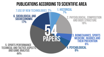 Paddle is a sport of great social recognition in Spanish speaking countries. In Spain, it has become the seventh most practiced according to data from the CIS and the fourth with more federative licenses, with a total of 61,220 athletes.1 These data do not agree with the lack of scientific works of this sport, although it is also one of the sports on which the number of players in Spain is increasing. Among others that is due to the socializing power of its practice (before, during and after the game). With respect to the game analysis and the scientific work connected to paddle developed so far, only 54 references have been found. Paddle references have been decanted towards the analysis of sports performance, especially of the game, technique and Tactics, with very little work being done in the rest of thematic areas2 (Figure 1).
