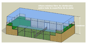 It is a relatively young sport, devised by Enrique Corcuera in 1962 in Mexico City,3 which in 1974 was introduced in Spain by Alfonso de Hogenlohe.4 Its origins, in the middle Ages in France (jeu de paume),5 are related to the background of the rest of racket sports with more tradition.6 The field of play is a rectangle of 20x10 divided in its half by a net. In each field can be observed (Figure 2) the service lines (parallel to the net) and perpendicular to the central service line.7 The track is completely closed, as shown in Figure 3. In the enclosure we can find materials that allow the natural bounce of the ball and metal areas where the rebound is irregular.7 Finally, the material for the development of this sport practice is specific, that is to say, the blades and balls have certain characteristics (Figure 4).
