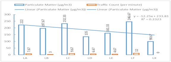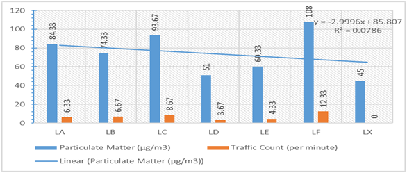Statistical analysis was carried out by using SPSS version 20 and the analysis of variance was used to fashion out the mean and standard deviation of the triplicate samples. Meanwhile, Duncan Multiple Range post Hoc tests was used to establish the degree of significance (p=0.05) in the distribution of particulate matter and traffic count. In addition, the 2016 version of Microsoft and Excel package was used to plot charts where applicable based on mean values.