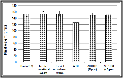 Figure 2 Effect of ozone treated and AFB1-contaminated wheat alone or treated with ozone on final body weight in rats.