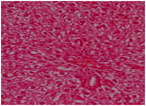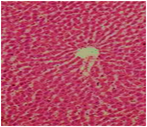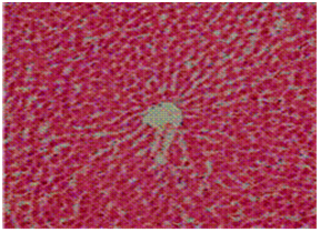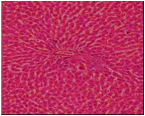 Figure 6 Section in liver of rat fed AFB1-contaminated diet after ozonation showing significant improvements in liver tissues and normal hepatocytes.