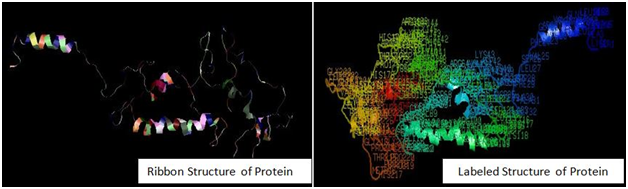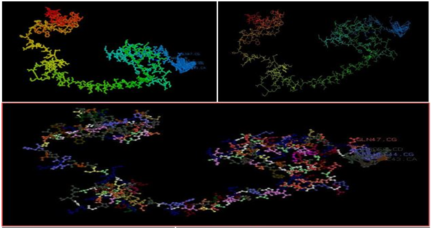 Selected model analysis based on 2D and 3D structure visualization and the model visualization completed with the help of different type of software’s for example: Chimera, Rasmol, and discovery studio computational predicted models via bioinformatics approaches and the method of homology modelling is based on the observations because that’s protein tertiary structure is better conserved than amino acid sequence (Figures 2-4).13