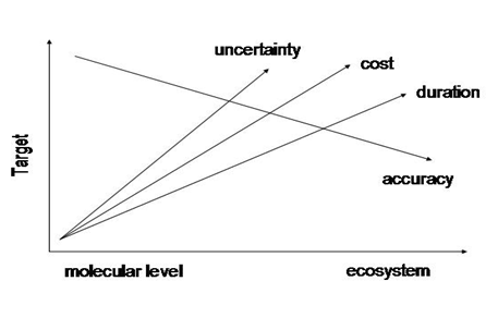 Figure 2 Relation of uncertainty, cost, duration and accuracy of experimentation to life level and level of target completion.
