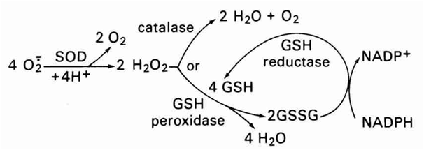 2 GSH + H2O2 —> GSSG + 2 H2O