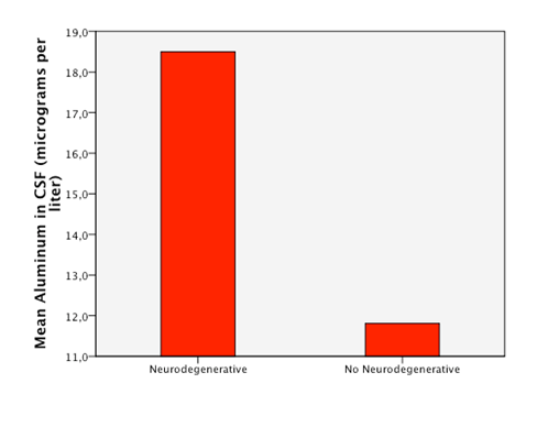 Figure 1 Statistical significant higuer mean level of aluminum in CSF in patients with neurodegenerative diseases compared to patients with non neurodegenerative disease.