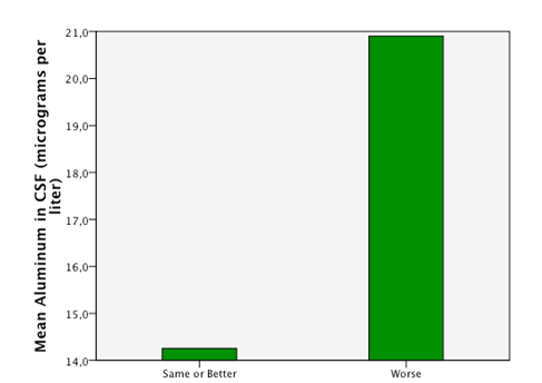 Figure 2 Patients with higuer mean levels of aluminum in CSF responded less efficiently to the treatment with BM-MNC (“worse”).