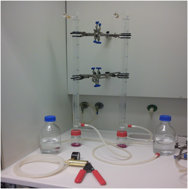 Where Δg is the weight change in grams, A is the surface area in cm2, t is the immersion time in hours, and ρ is the alloy’s density in g cm-3. The experimental setup for the gas evolution method is depicted in Figure 1. All samples were first weighed and then immersed in DMEM containing 10% FBS. Gas production was measured by eudiometer (400ml, Rettberg, Germany) at room temperature and atmospheric conditions. The graded cylinders were filled with distilled water. The reading was taken every 24 hours. The observation time was 96 hours.