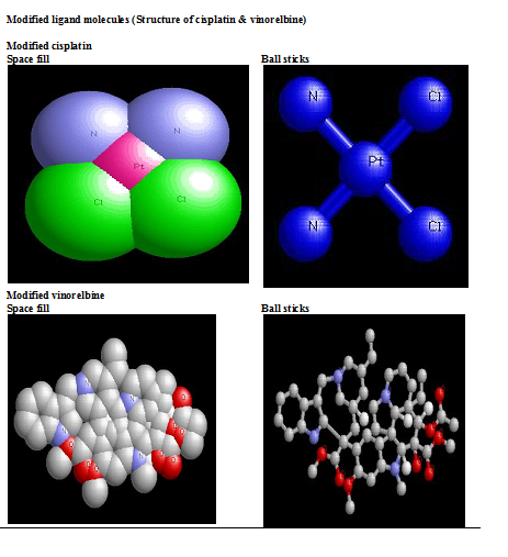 Table 10 This table explains the results of docking with Adenocarcinoma with modified cisplatin Total 20 models predicted with statical parameters but we selected model numbers 1 out of 20 because good bing score and area coverage of the molecule