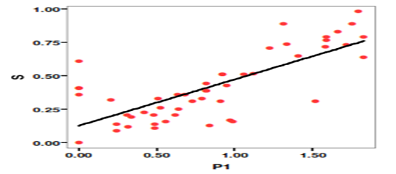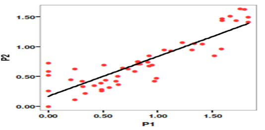A statistical significant positive correlation was found between the PRM1 levels and both PRM2 and SEMG1 levels (r=0.839 and r=0.688 respectively and p<0.000** for both) as shown in Figures 5,6.
