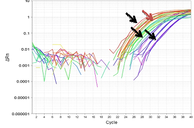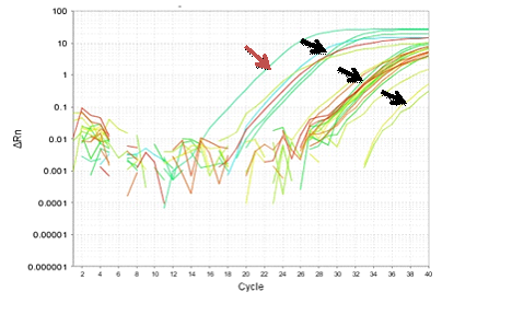 Figure 8-13 showed the PCR results for PRM1, PRM2 and SEMG1 identification in semen contained forensic samples in the three studied groups (normozoospermic, oligozoospermic and azoospermic) as well as their amplification plot curves. PRM1 has got the most clearly visible bands followed by PRM2 and then SEMG1. Also it was clear that in the gel electrophoresis for PRM1 Figure 8, the visibility of the bands decreased with the sperm count with absence of PRM1 band in azoospermic group. It was clear that RT-PCR was more accurate than electrophoresis as it can detect the PRM1 in the azoospermic group Figure 9. As regards PRM2, the band was faint in azoospermic group Figure 10 which indicates that the markers are not only used for identification but also for determining the semen profile of the suspect.