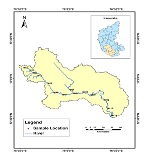 Figure 1 shows the sampling stations along River Hemavathi. The Sampling station H1 and H14 corresponds to the upper and lower reaches of the river. The soil and sediment samples were collected from the river bank and river drainage respectively with following standard procedures (EML).4 For the seasonal variation “analysis” the samples were collected from January and August. The collected sample was stored in polyethylene bags and brought to the laboratory for the further processing. The samples were dried in an air circulated oven till constant dry weight is obtained.5