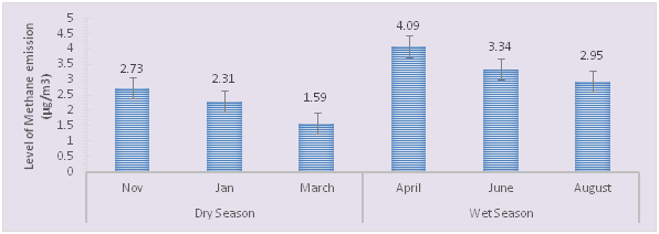 Our result is comparable to findings of other authors. Methane emissions in Eneka dumpsite located in Port-Harcourt was below detection limit as reported by Ezekwe et al.15
