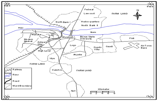 The study was carried out in Makurdi (Figure 1) and the Syndontis clarias juveniles were obtained from the fisher man. This was done under special arrangement and the fisher men were met with at the Wadata fishing market located on the bank of the river Benue for the collection of the live juveniles of Synodontis clarias as scheduled and arranged with them. Makurdi town is the headquarters of Makurdi Local Government Area and capital of Benue State. The town is located between latitude 7°38’N and 7°50’N, and longitude 8°24’E and 8°38’E. It is situated in the Benue valley in the North Central region of Nigeria. It is traversed by the second largest river in the country, the River Benue. The climate of Makurdi town is the tropical wet and dry type, Koppen’s Aw classification, with double maxima Ayoade.10 The rainy season lasts from April to October, with 5 months of dry season (November to March). Annual rainfall in Makurdi town is consistently high, with an average annual total of approximately 1173 mm Abah.11 Temperature in Makurdi is however, generally high throughout the year, with February and March as the hottest months. Temperature in Makurdi varies from a daily of 40 °C and a minimum of 22.5 °C Ologunorisa & Tor.12 The vegetation of Makurdi town is the guinea savannah. This vegetation type has been adversely affected by human activities leading to the clear-cutting of tree cover in many parts of the town. The river Benue passes through the Makurdi town from Yola Adamawa state to where it meets with the River Niger at Lokoja, Kogi state Nigeria. Fishing activities and sand dredging are the major economic activities in the Benue River within Makurdi metropolitan area. More so, the river is used for getting domestic water supply for Makurdi Water Works to be treated and supply to the residents of Makurdi through Makurdi water works. Other people use the river water directly without adequate treatment. All the same, the river is not devoid from pollution sources as the brewery and rice milling industries are located on the bank of the River. Wastes from the operations of these industrials are discharged into the river without minding its detrimental effects. Indiscriminate dumping of wastes and even defecation is done in side the river among residents in Makurdi that live on the bank of the River. Makurdi town is inhabited by many tribes with a population of 297,398 of out of which 157,295 are males and 140,103 are females (Federal Republic of Nigeria Official Gazette 2007).13 These tribes include the Tivs, Idomas, Etilos, Jukuns, Egede, Hausas, Yorubas and Ibos. The Tivs are the dominant tribe. Makurdi town is made up largely of people who engage in civil service duties, commercial activities and agrarian peasantry. Makurdi town is a built-up area with the highest concentration of people in high level and Wadata. Dense population also exist in some low-lying parts of the town such as Wurukum.