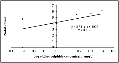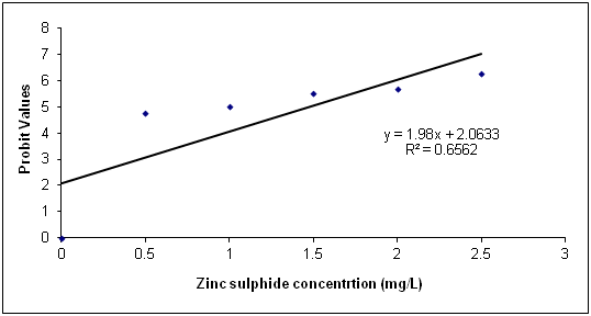 Figure 2 Regression of Probit mortality values and varied concentration of zinc sulphide exposed to