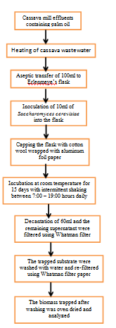Figure 1 Schematics of Saccharomyces cerevisiae biomass production from cassava mill effluents (Modified from Izah et al., 2017a-e; Izah, 2018a, e).