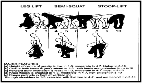 It is practically impossible for a substantial number of workers to undertake continuous lifting tasks of low-lying objects - when using the squat method of lifting recommended by the lifting experts. What little evidence that is available does suggest that there may well be some clinical advantages for using the semi-squat lifting technique. Therefore, it has concluded that the traditionally recommended squat style of lifting is slower and physiologically more demanding (Figure 3).