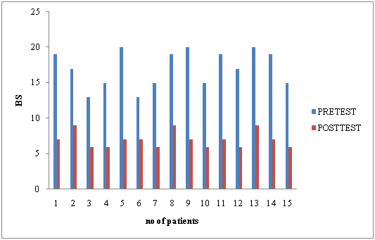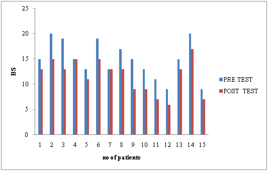 Independent “t” test was used to show the effectiveness of treatment between group A and group B (Graphs 1–5).