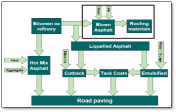 Asphalt was generally mentioned as bitumen, asphalt material or road oil, asphalt cement or filler, and was mainly produced in oil refineries.14 Asphalt plants, or asphalt mixing facilities were considered as industrial activity, in which mix liquefied asphalt ligament (likewise named asphalt filler or concrete) with crushed rocks, gravel, and sand (together named aggregates) for create paving substance. Asphalt ligament was adhesive substance that binds the aggregates with each other, also it was obtained from distillation process in oil refining activity.15There was quantity of emissions released from asphalt pavement mixing facilities, which may be create health or environmental risks.16 Figure 1 presents plot showed production and use of asphalt.17
