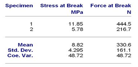 Figure 4 Tensile Test parameters are as follows.