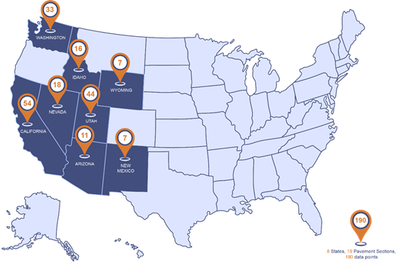 Figure 2 Study area containing states with observations numbers in dry climatic region. The database included four structural and four environmental factors which are shown in Figure 3.
