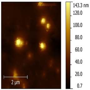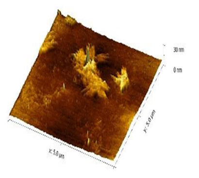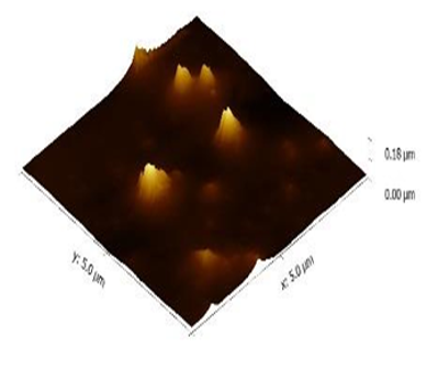 The atomic force microscope (AFM) images were taken to study roughness of the thin film surface. Since the films were prepared using the spin coating technique, the thickness is noticeably less than that of dip casting film. Consequently, the roughness is less when compared one-on-one with the dip coating film that has a thickness of the order of nanometers. The figures provided are 3-D images of
