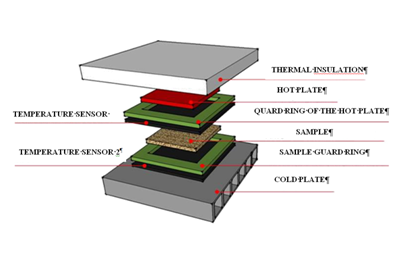 Where: λ=thermal conductivity [W/(mK)]; Q=heat flux density [W/(mK)]; A=Plate area (m²); Δt =Temperature gradient (K); e–Board thickness (m);