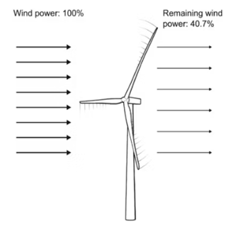 A significant discovery was made by Albert Betz in the theoretical aspect of turbines, who found that only 59% of the kinetic energy from wind can be converted to mechanical energy.3 The company “Vernier Science Education” explains this well, “For a wind turbine to be 100% efficient, all of the energy available in the wind would need to be converted into electricity. In other words, all the energy in the wind would be transformed and the air would stop moving. This is not possible in practice because a rotor only spins if the wind passes over the blades” (Figure 1).4