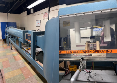 After many iterations of prototypes, we followed the Savonius cup shape method to begin testing. In these tests, the performance of different cup diameters, at measured wind speeds with and without MAGLEV technology, are compared. We were able to utilize a wind tunnel (Figure 7) to test and obtain the most accurate results possible. The wind tunnel is effective in producing accurate results because of the enclosed space and the constant laminar flow it produces. Unfortunately, the lowest wind speed value in the tunnel was 6 m/s; so we had to test medium to high wind speed ranging from 6-14 m/s. Since the wind tunnel has a confined test space of 0.610 m x 0.305 m x 0.254 m, we had to optimize our wind turbine prototype to fit in the space available in the wind tunnel.