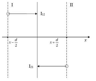 The total flux of diffusing atoms in the positive direction of the x-axis is equal to the difference in the flux I12 (from the plane x – d/2 to the plane x + d/2) and I21 (in the opposite direction).18