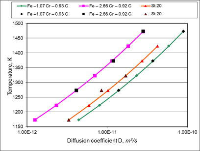 Table 1 Experimental data for diffusion coefficient of carbon atoms in iron and steels25