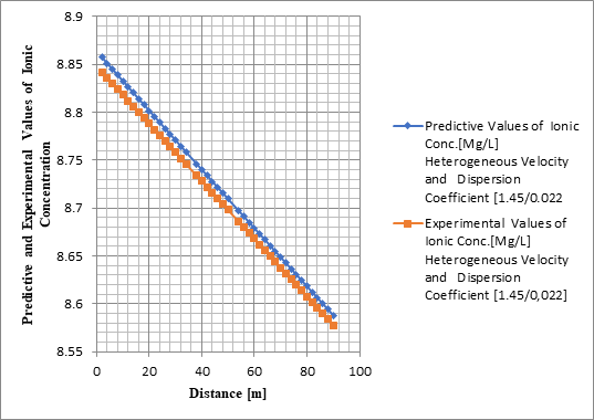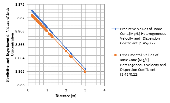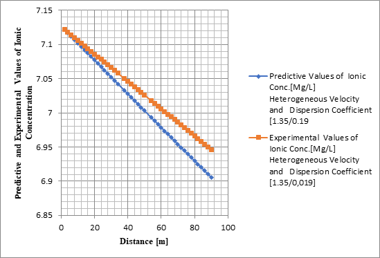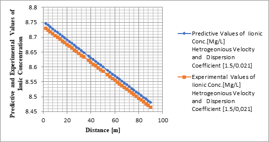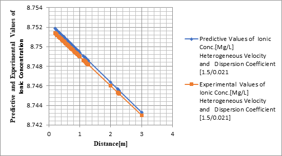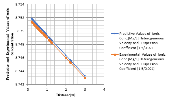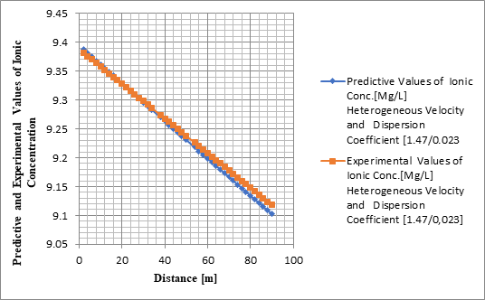 Predictive Values of Ionic Conc.[Mg/L] Heterogeneous Velocity and Dispersion Coefficient [1.5/0.021] |