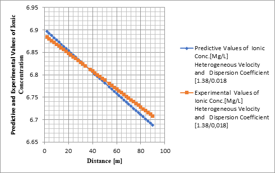 Experimental Values of Ionic Conc.[Mg/L] Heterogeneous Velocity and Dispersion Coefficient [1.5/0,021] |