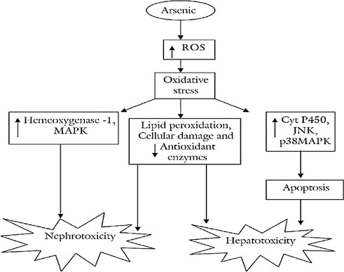 Figure 4 Pathways for As-induced nephrotoxicity and hepatotoxicity.60