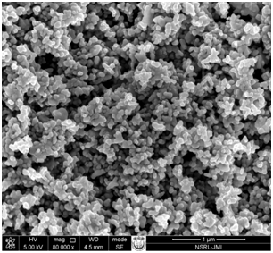 The surface morphology of the as-acquired zirconia nanoparticles was investigated by scanning electron microscopy as shown in Figure 2. SEM image clearly indicates that the zirconia nanoparticles has smooth surface with small particle size. The agglomeration of nanoparticles is also visible in the SEM images.